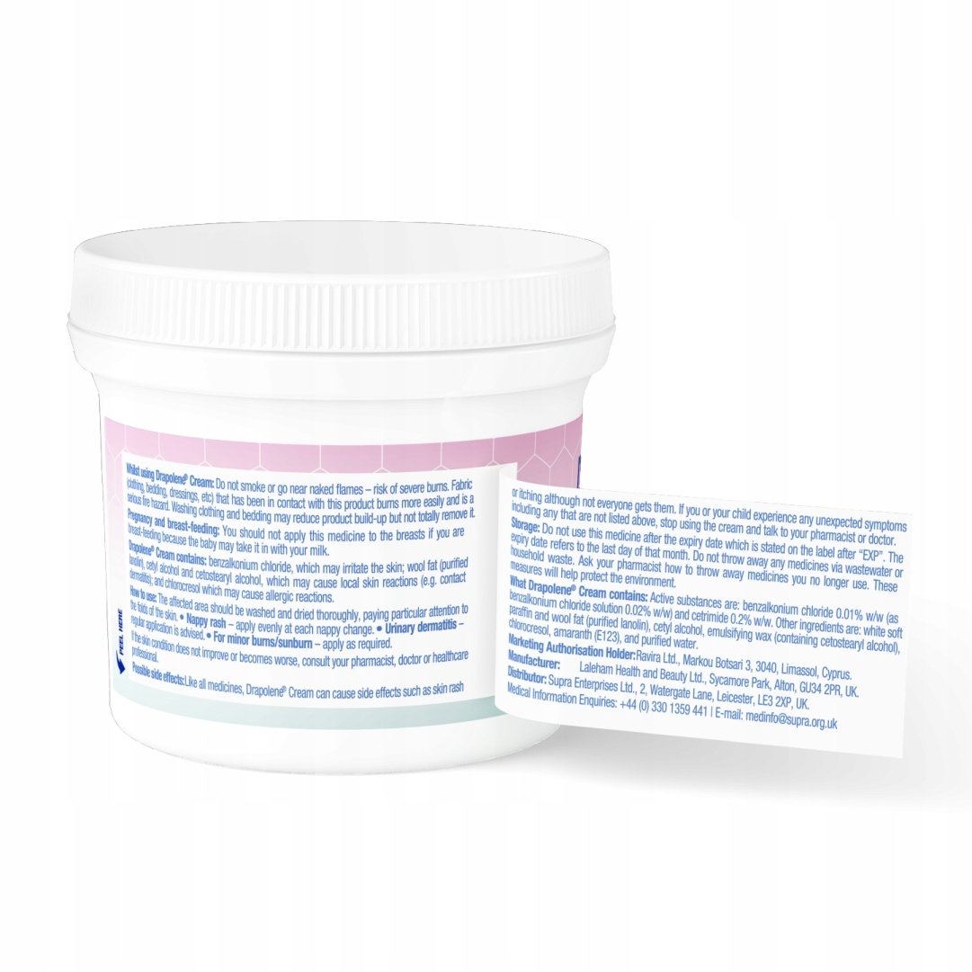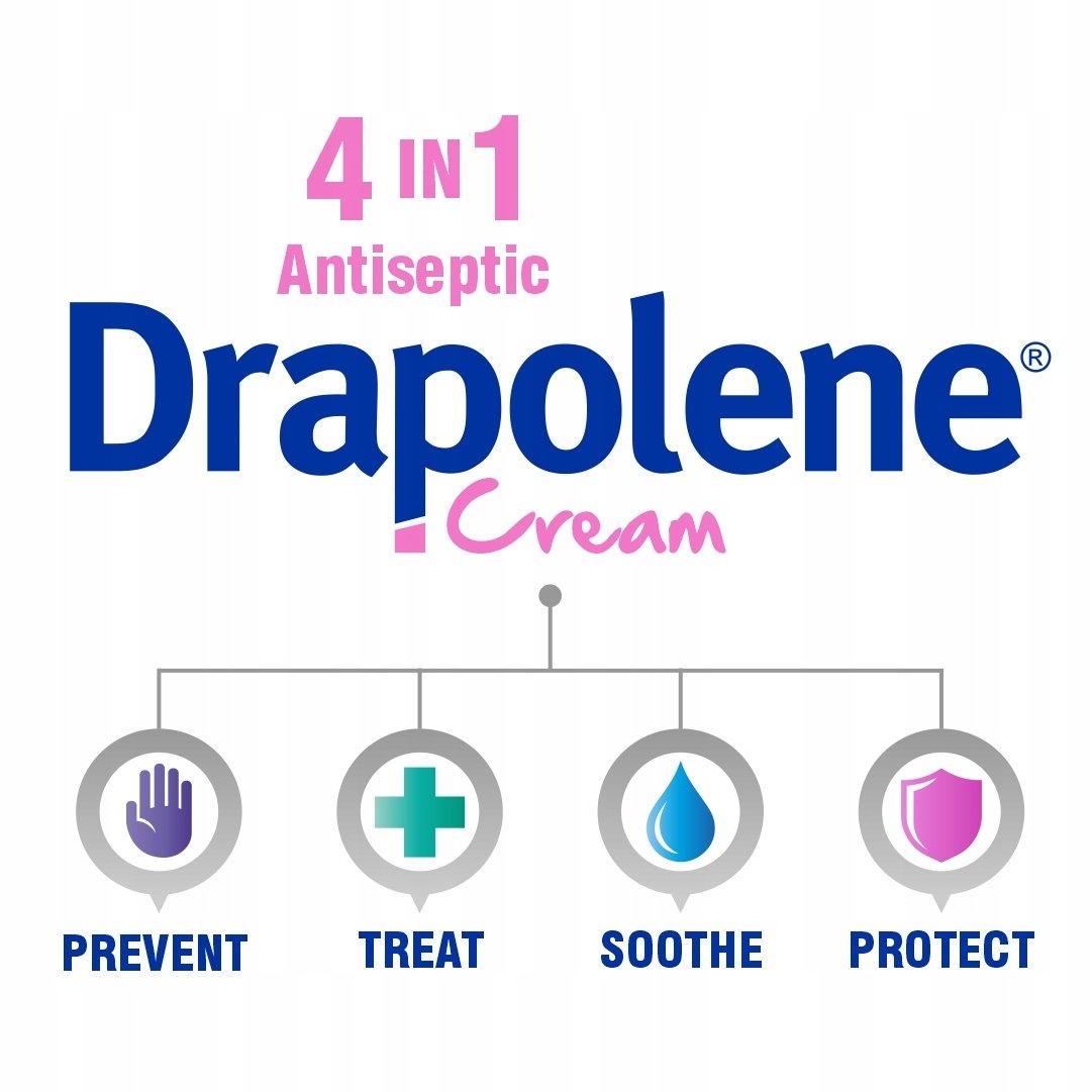 Krem Drapolene to łagodny preparat antyseptyczny do pielęgnacji skóry niemowląt i dorosłych. Zapobiega i leczy odparzenia pieluszkowe, koi skórę, nawilża oraz tworzy barierę ochronną przed drażniącymi czynnikami zewnętrznymi.