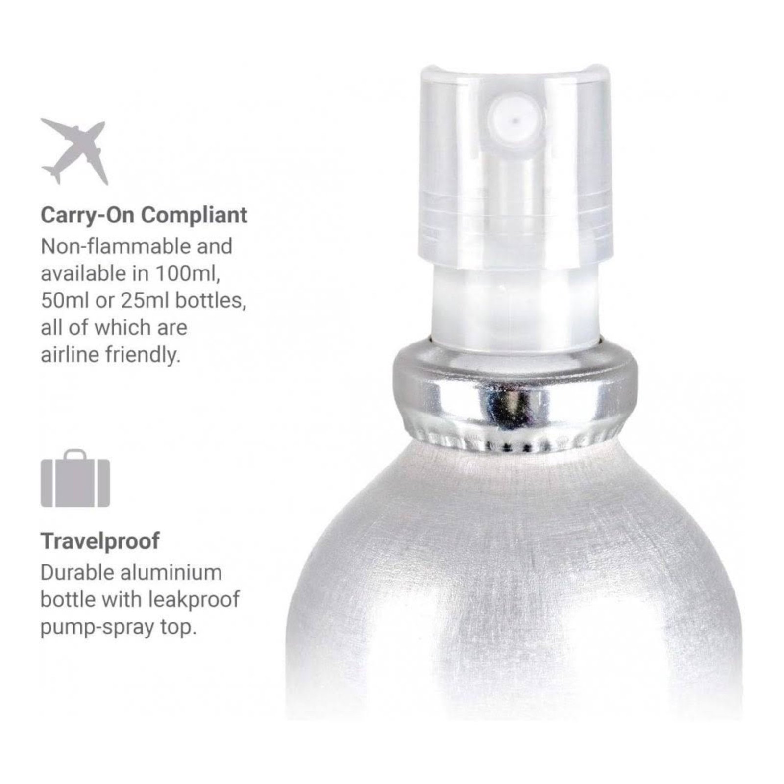 – aluminiowa, szczelna butelka z pompką – praktyczna i bezpieczna w podróży
