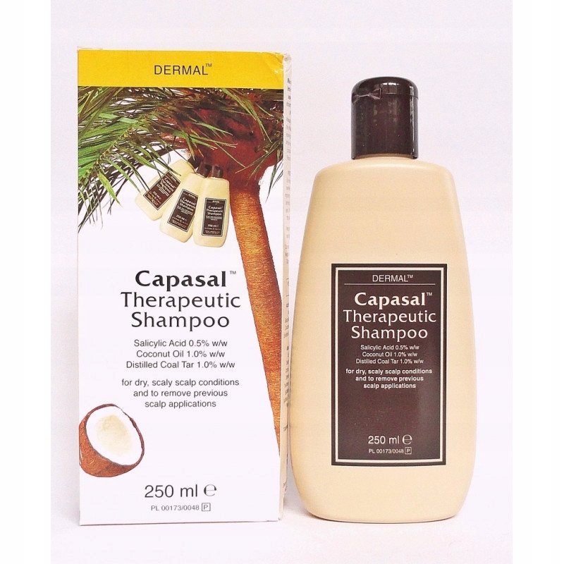 Bardzo skuteczny szampon leczniczy CAPASAL. Przeznaczony do stosowania przy takich schorzeniach skórnych jak: