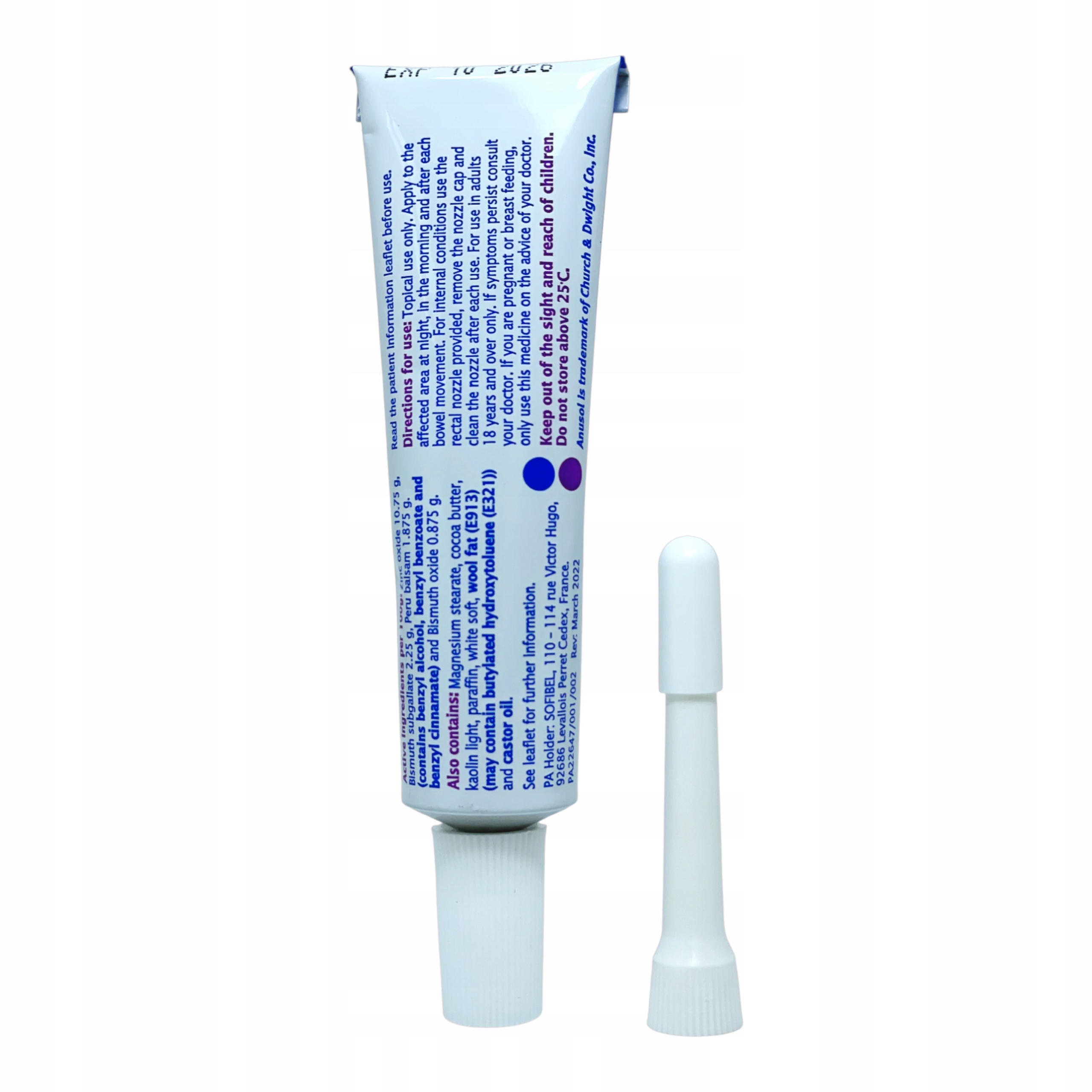 – w przypadku hemoroidów wewnętrznych: Umyj i osusz dotknięty obszar, nakręć dołączony aplikator na tubkę i zdejmij nasadkę. Wprowadź aplikator do odbytu i delikatnie wyciśnij maść. Po każdym użyciu usuń końcówkę aplikatora i dokładnie ją wyczyść